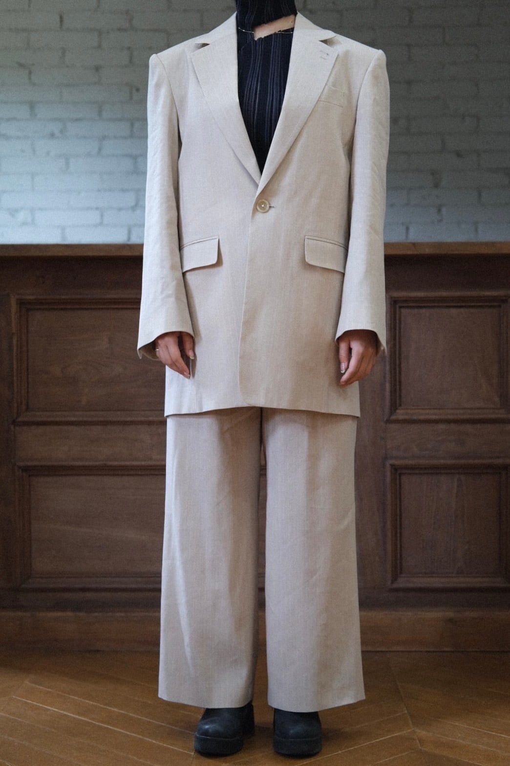 【BELPER】STRIPE TUCKED TROUSERS