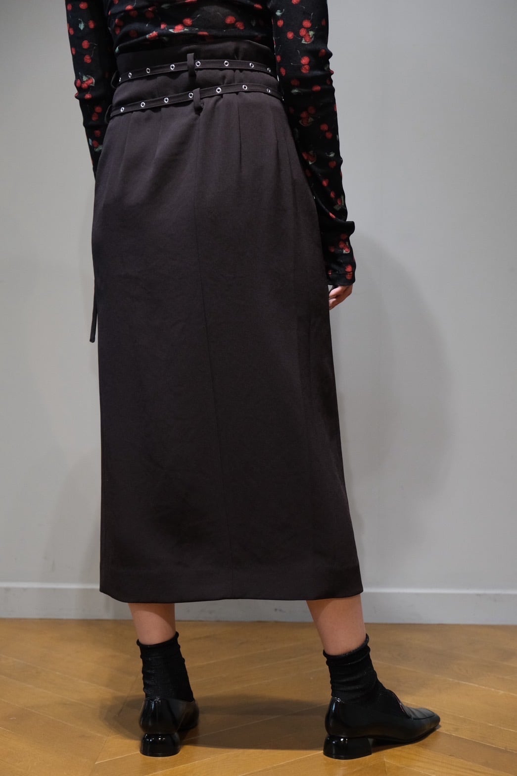 【FETICO】Crepe wrap skirt -dark brown-