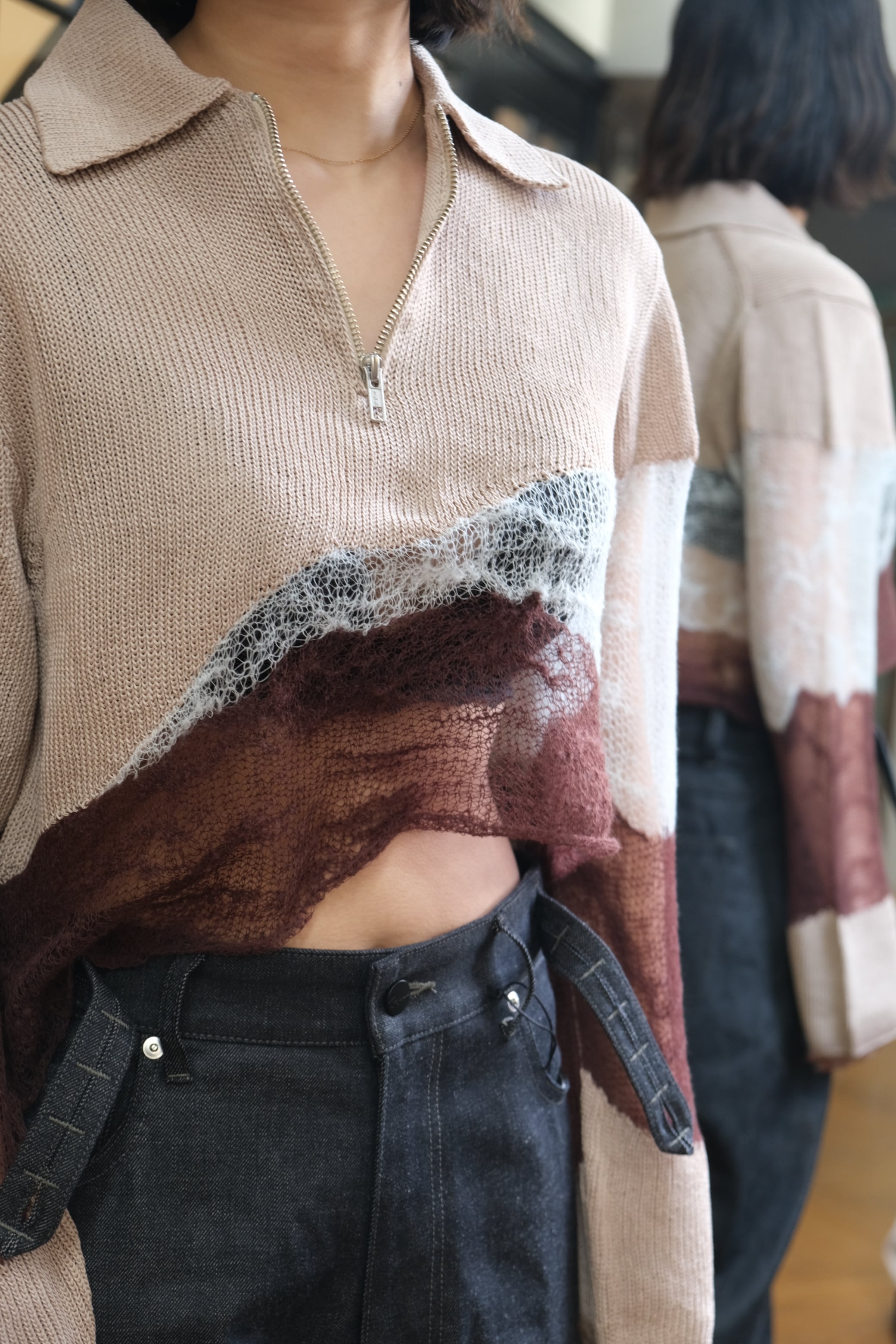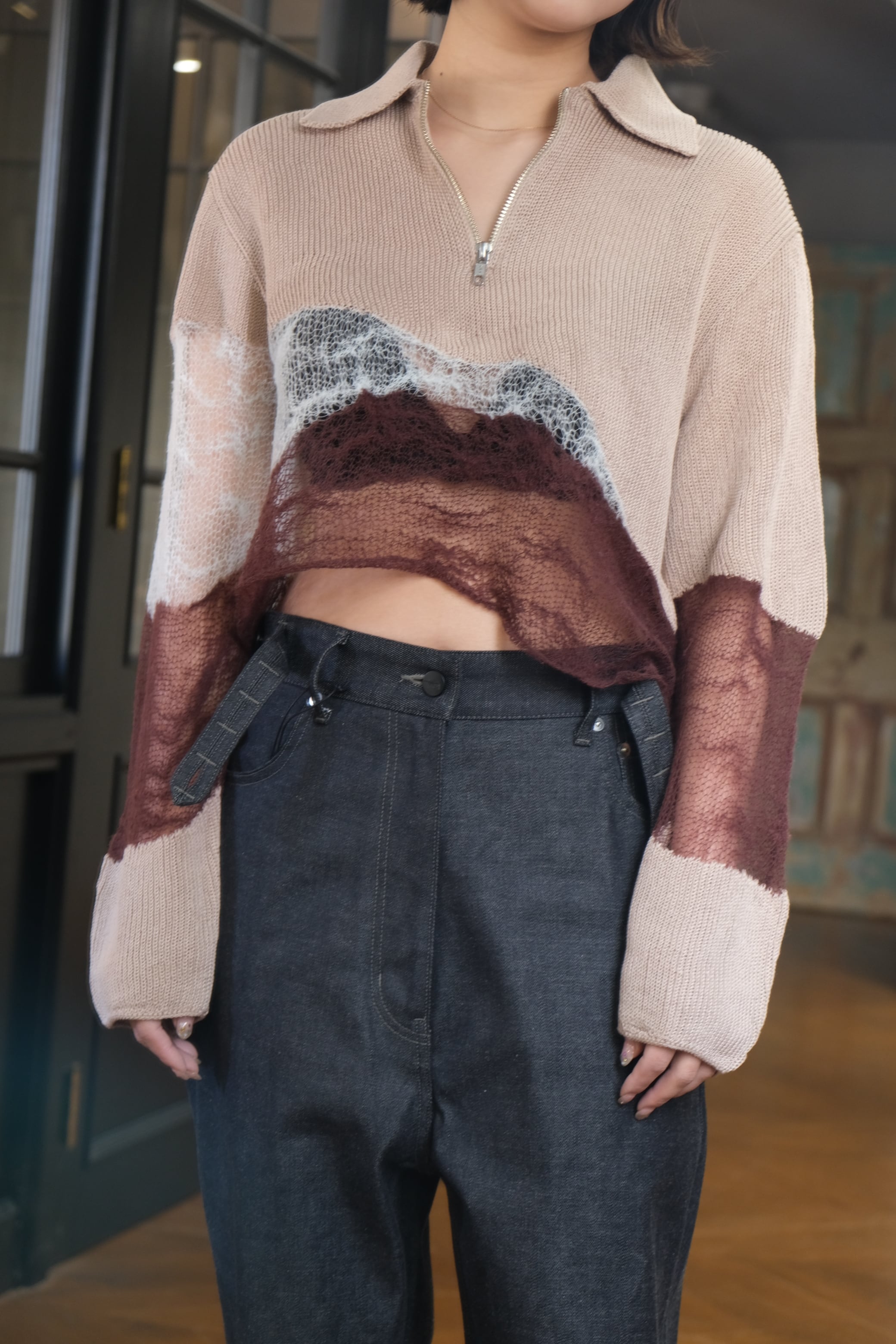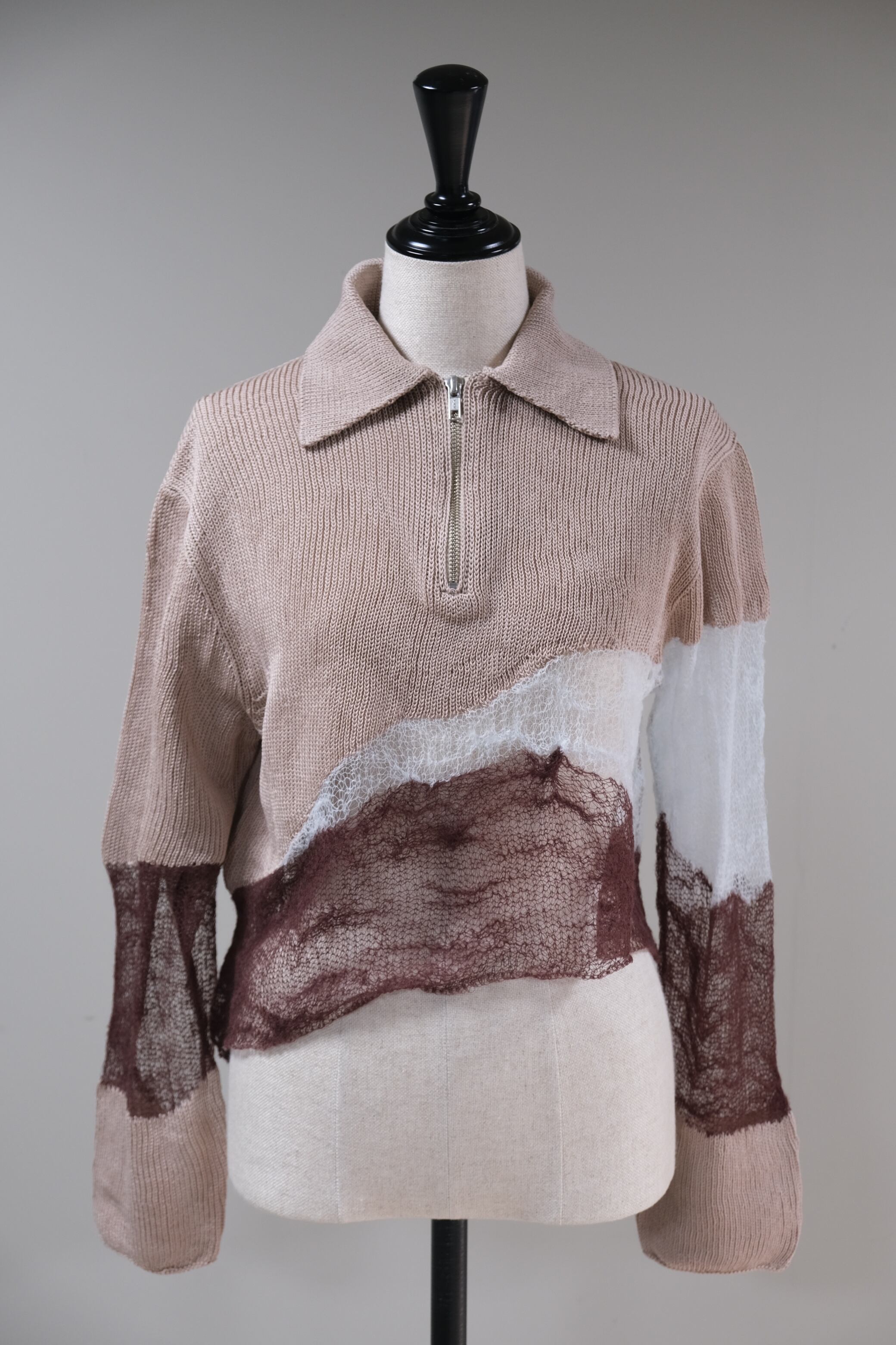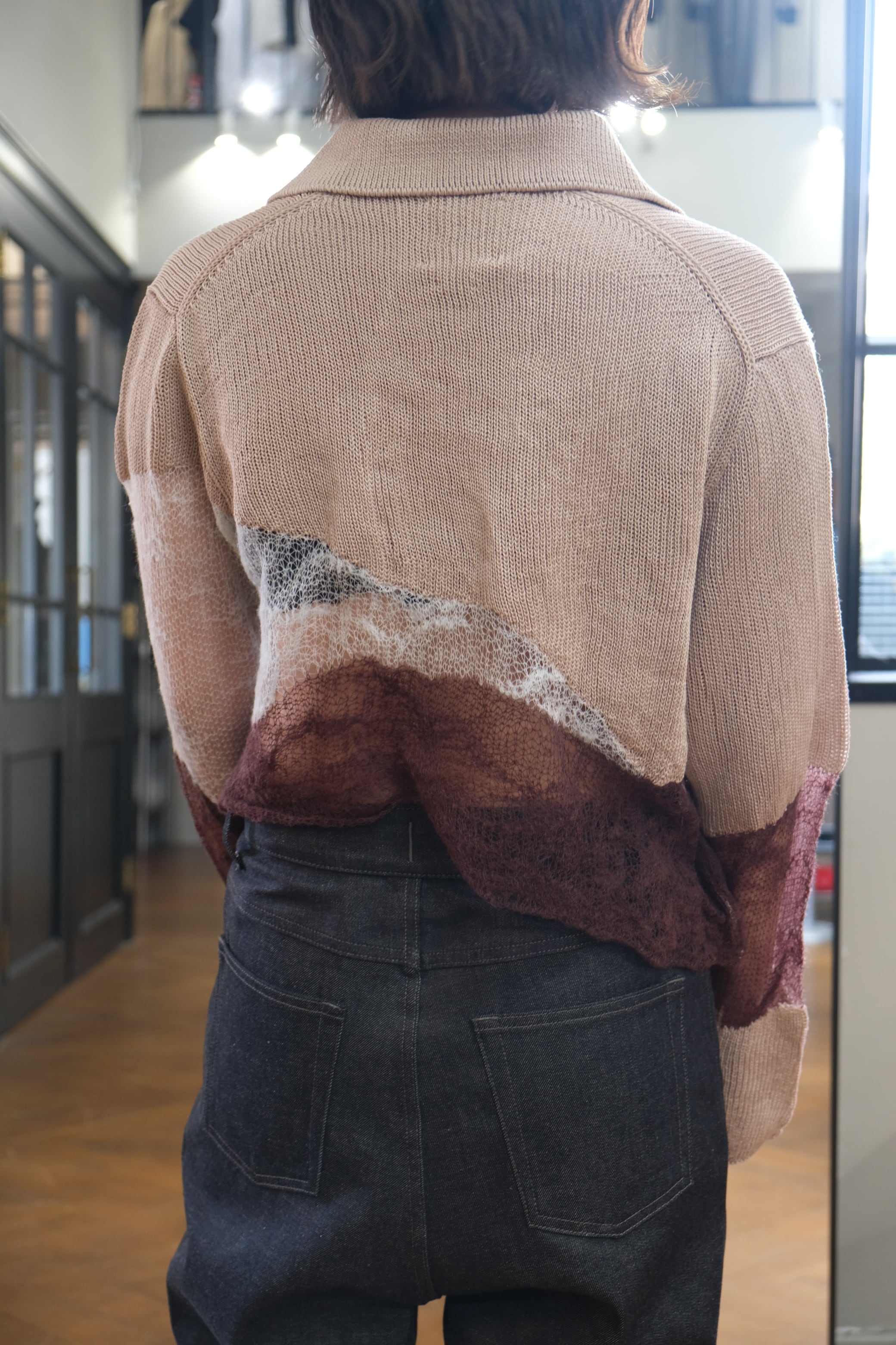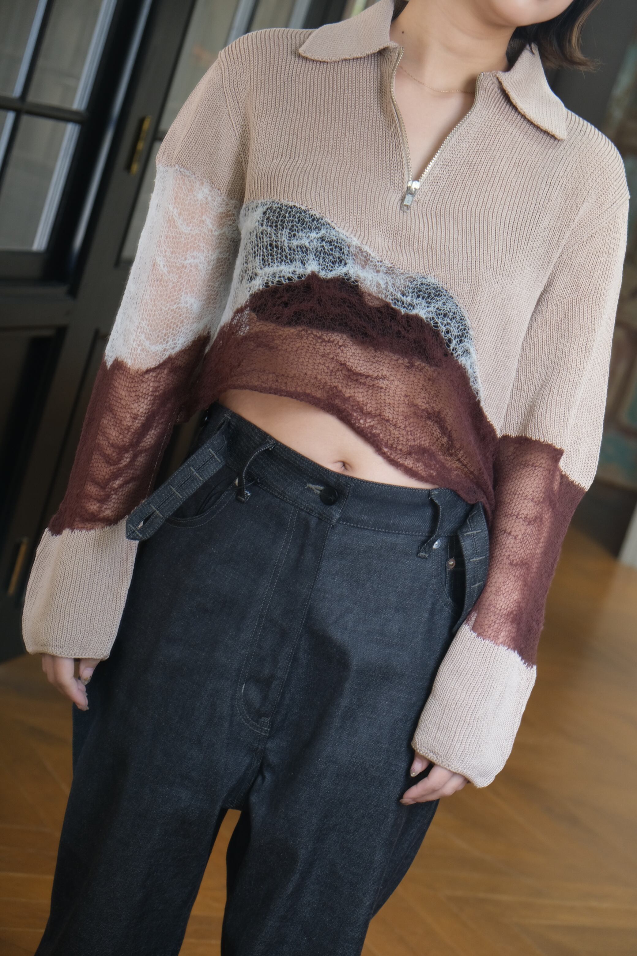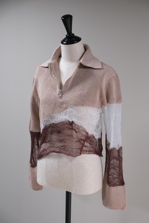 【kota gushiken】Solid & Fluid Zip-up Knit -Beige-