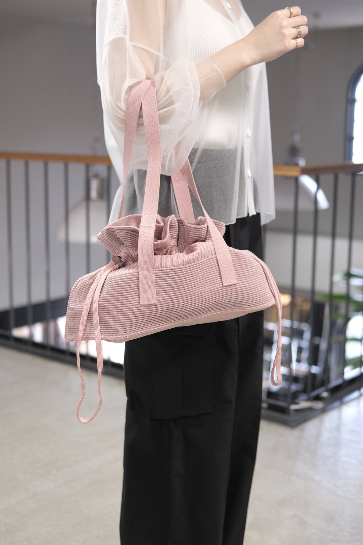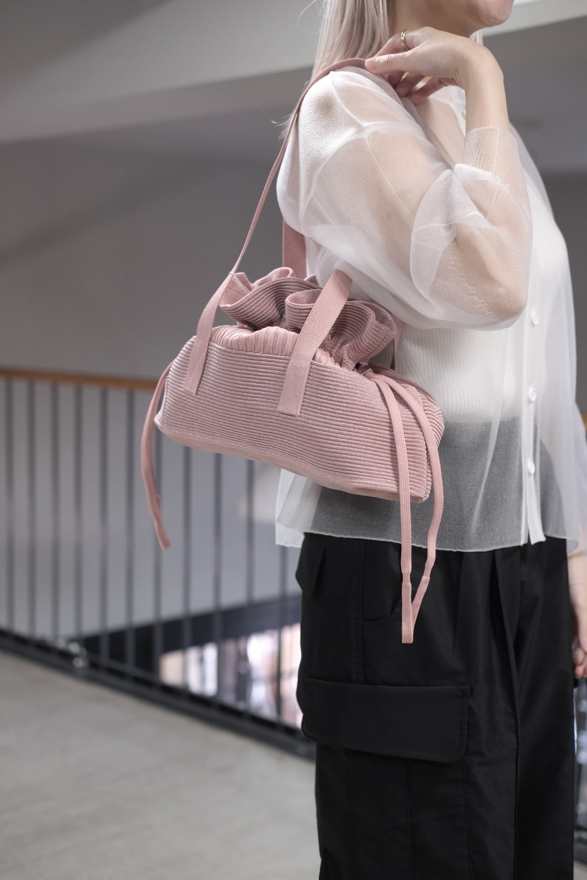 【CFCL】STRATUM GLITTER ELONGATED BAG -EGGSHELL PINK-SILVER-