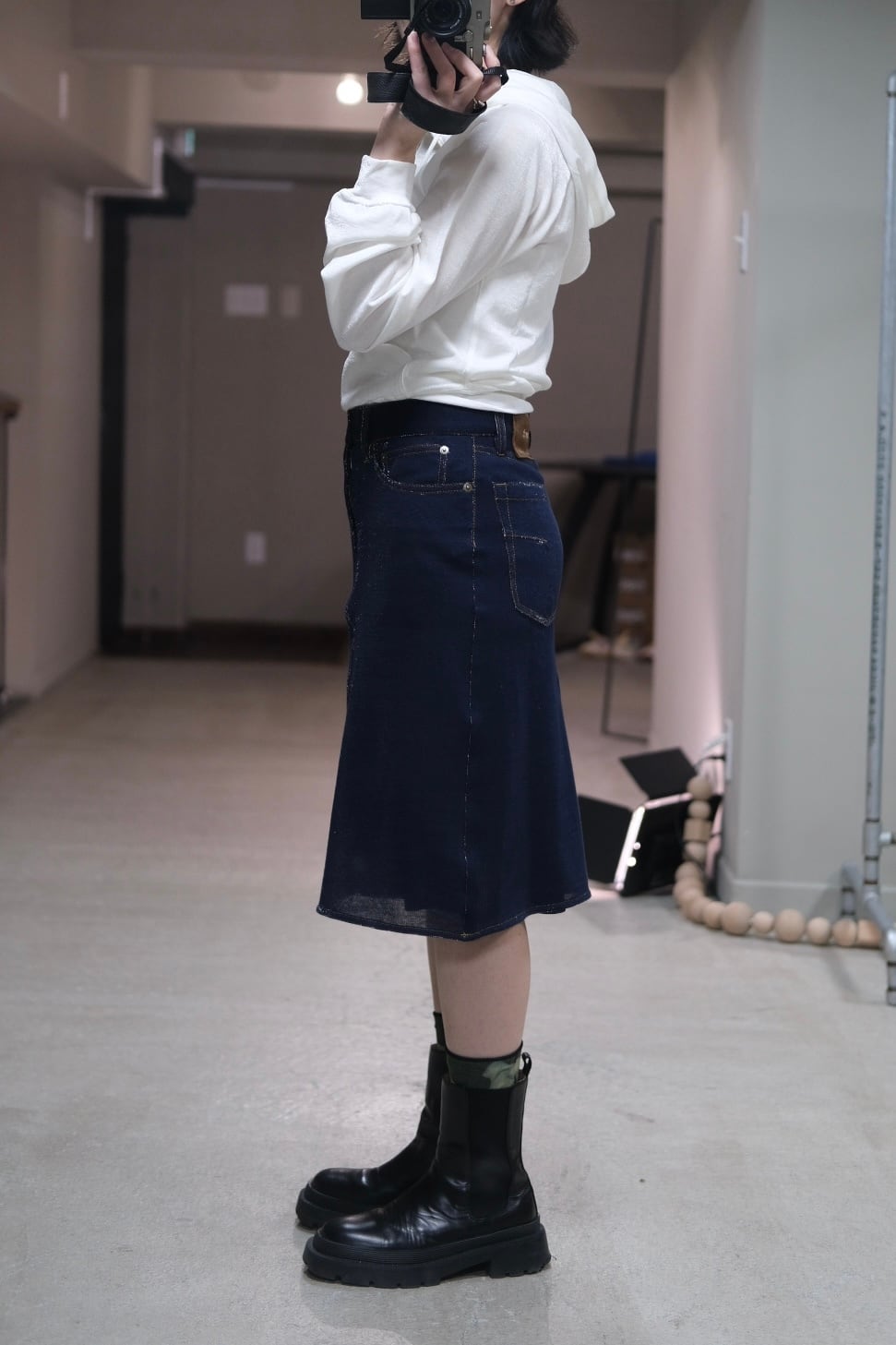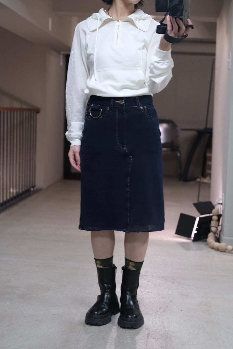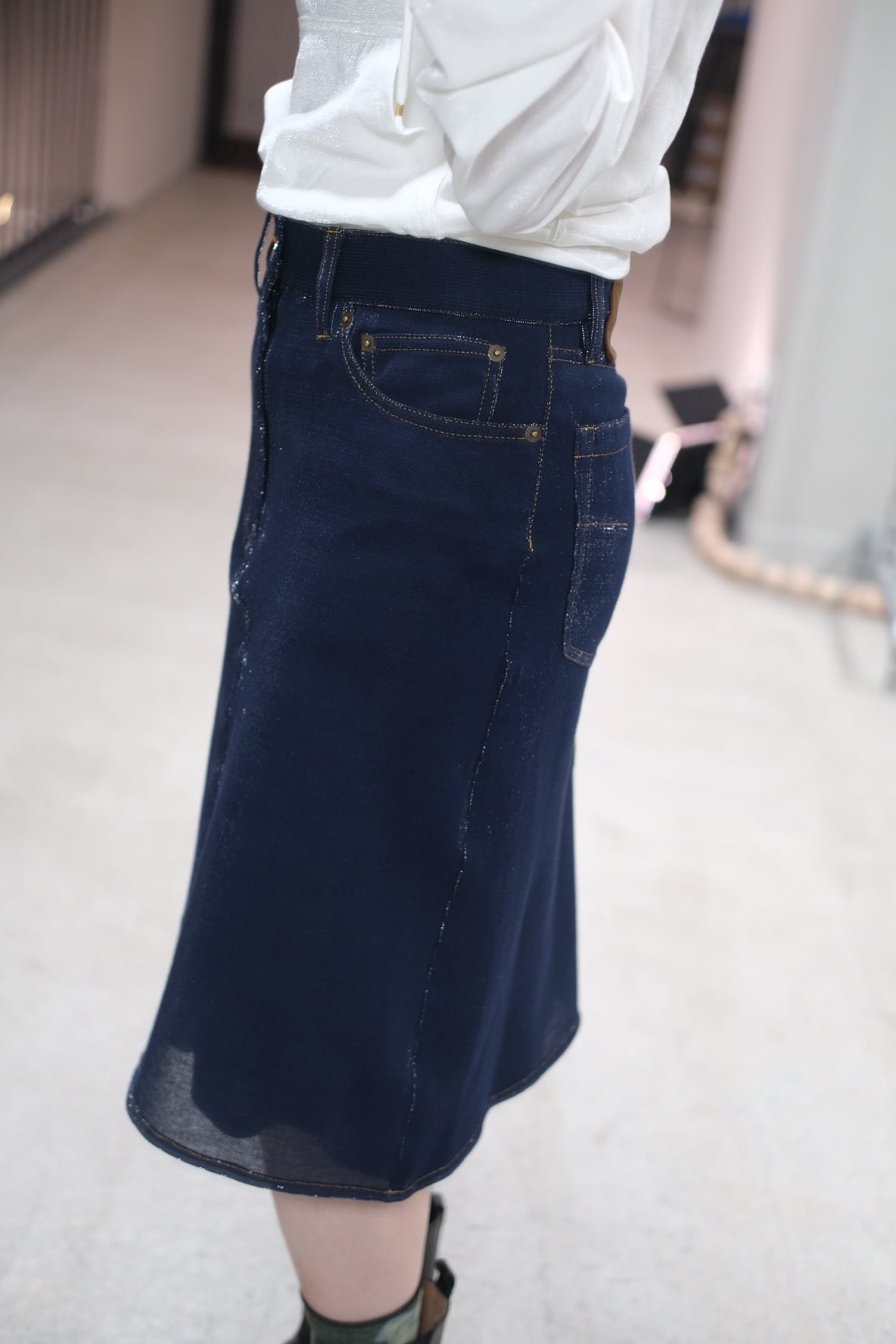 ※スタッフ身長 156cm 《size》 ⚫︎36 ウエスト:36 ヒップ:45 総丈:62 《material》 cotton 90% polyester 10% 《color》 navy