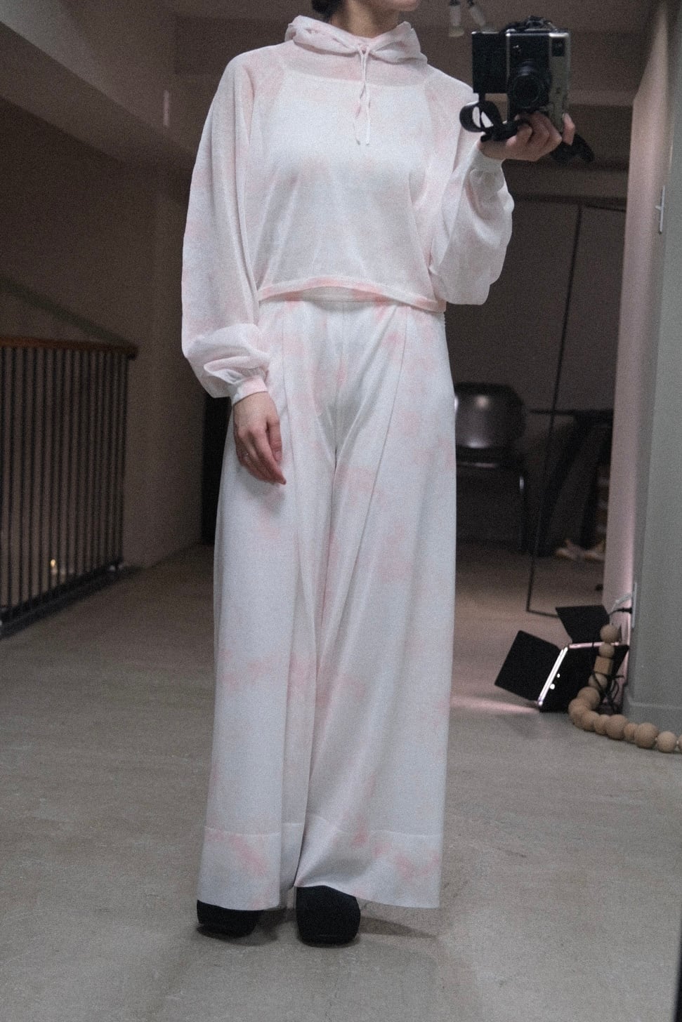 着用モデル:156cm 《size》 ⚫︎1 ウエスト:32.5 股上:28.5 股下:65 ヒップ:48 わたり:29.5 総丈:98 裏地総丈:92 《material》 綿 75% (コットンインコンバージョンを使用) ボリエステル 25% (再生ポリエステルを使用) 裏地 ポリエステル 100% 《color》 white