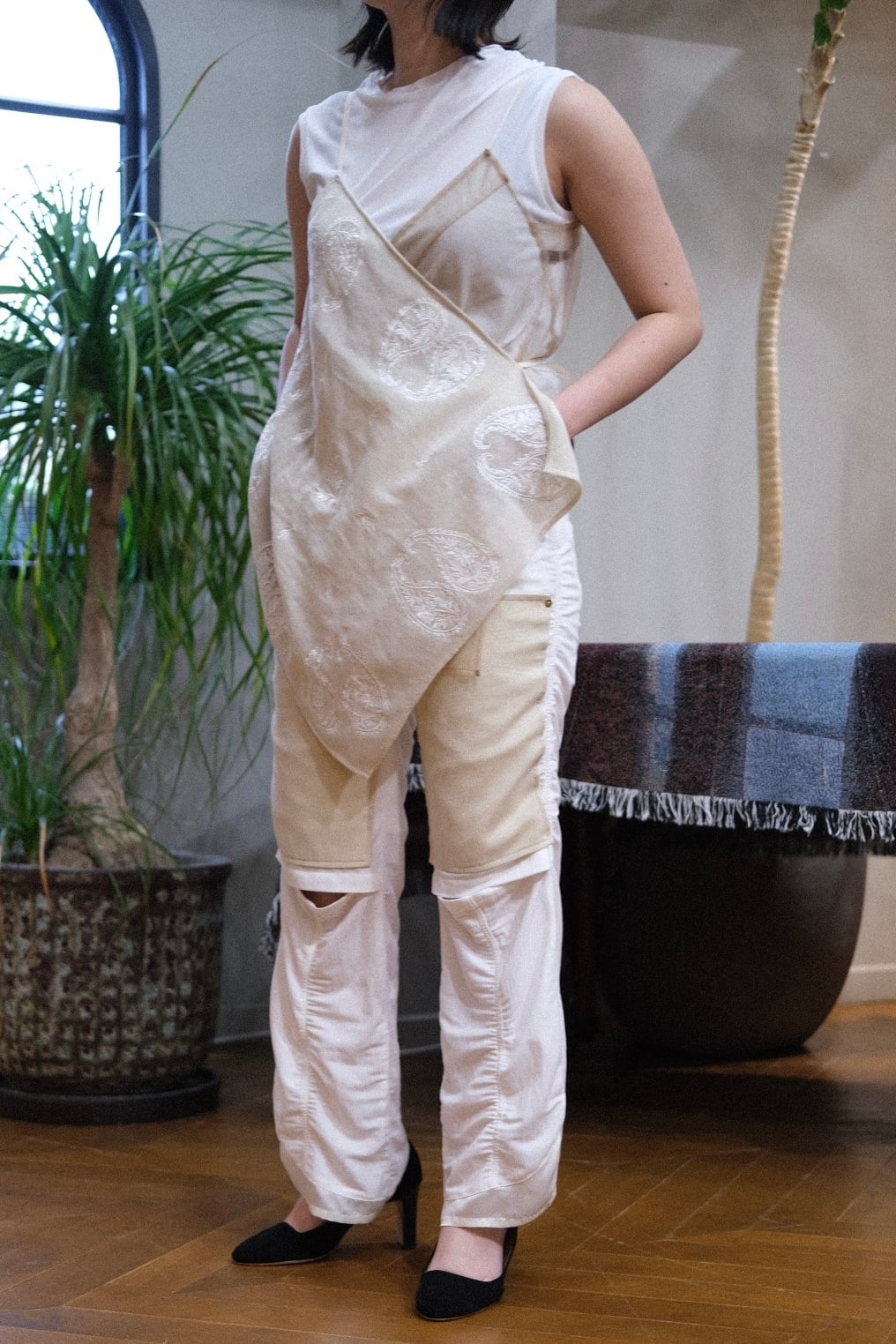 着用モデル 160cm material: 綿90%ポリエステル10% 別生地:ポリエステル100% size:free