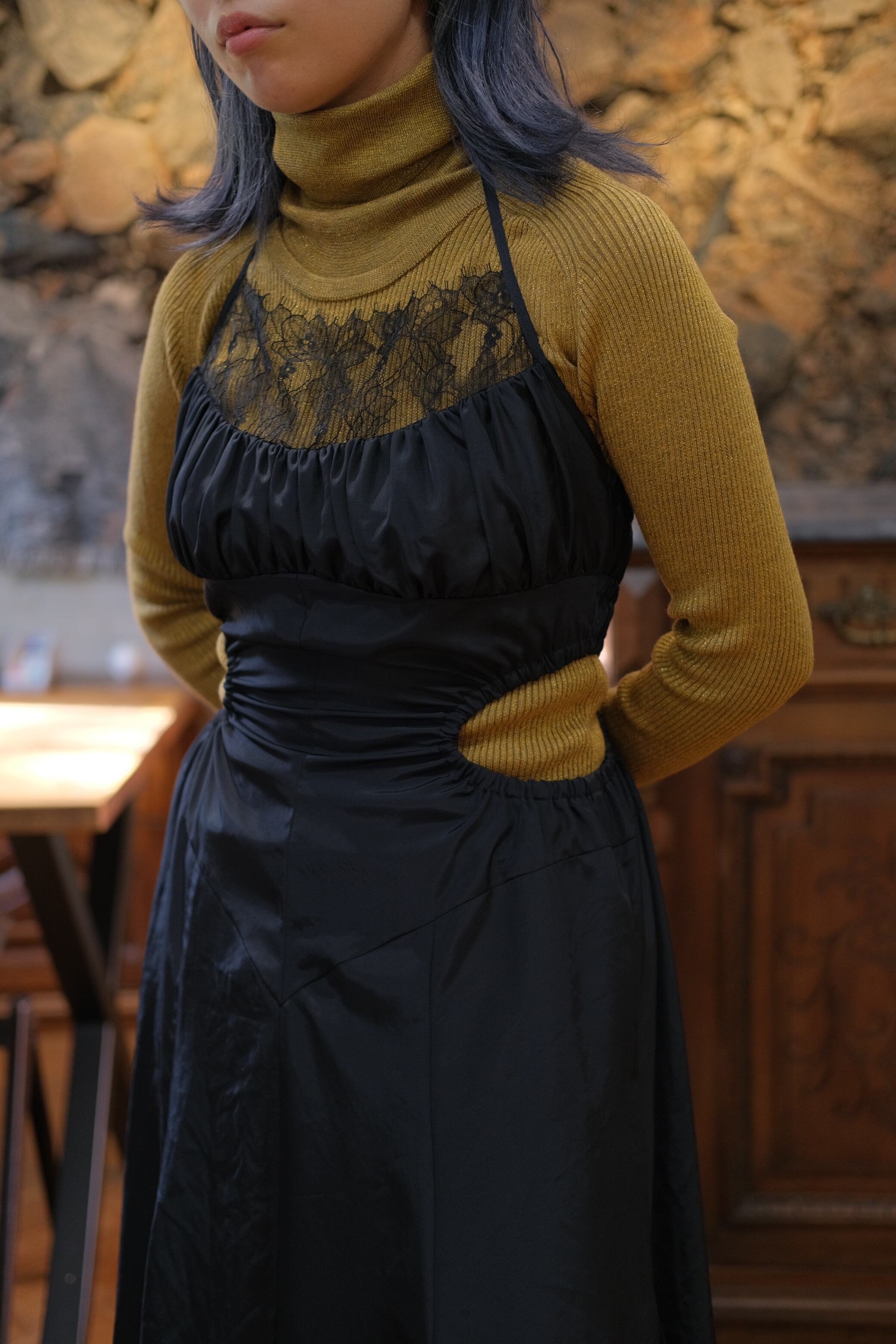 【FETICO】SATIN HALTER DRESS