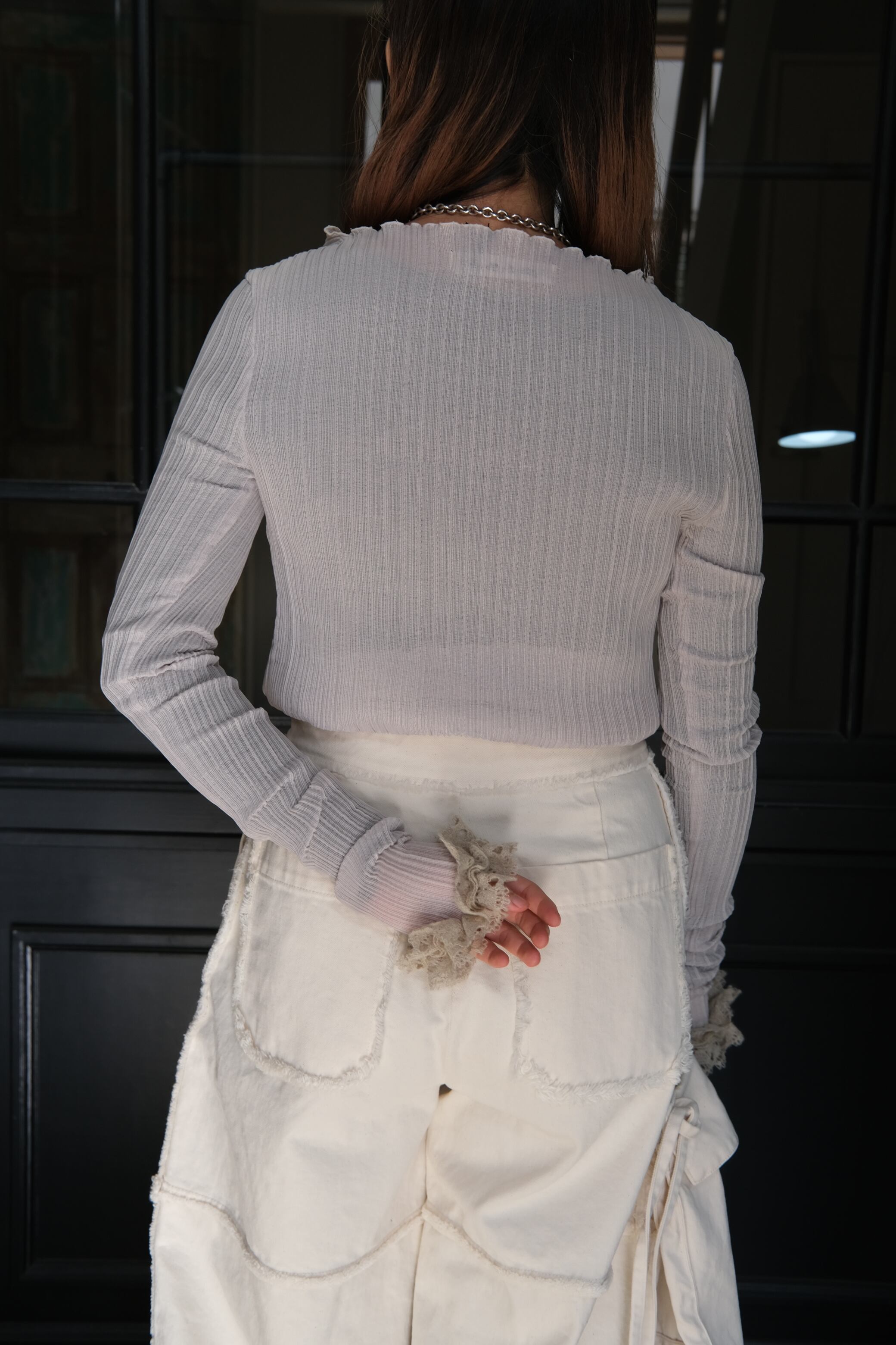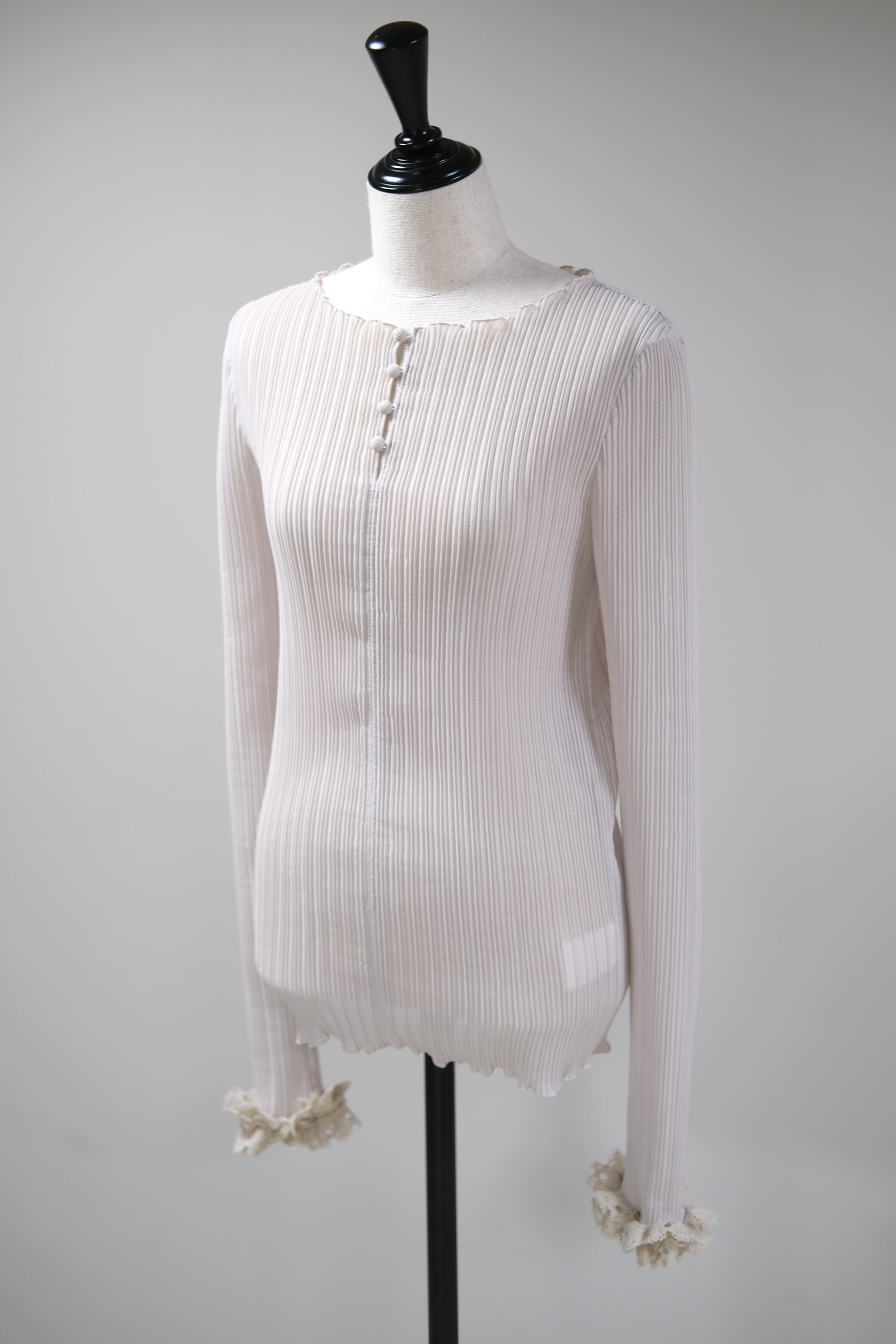 【Tanaka Daisuke】frilled cuffs rodam rib pullover - Ice gray