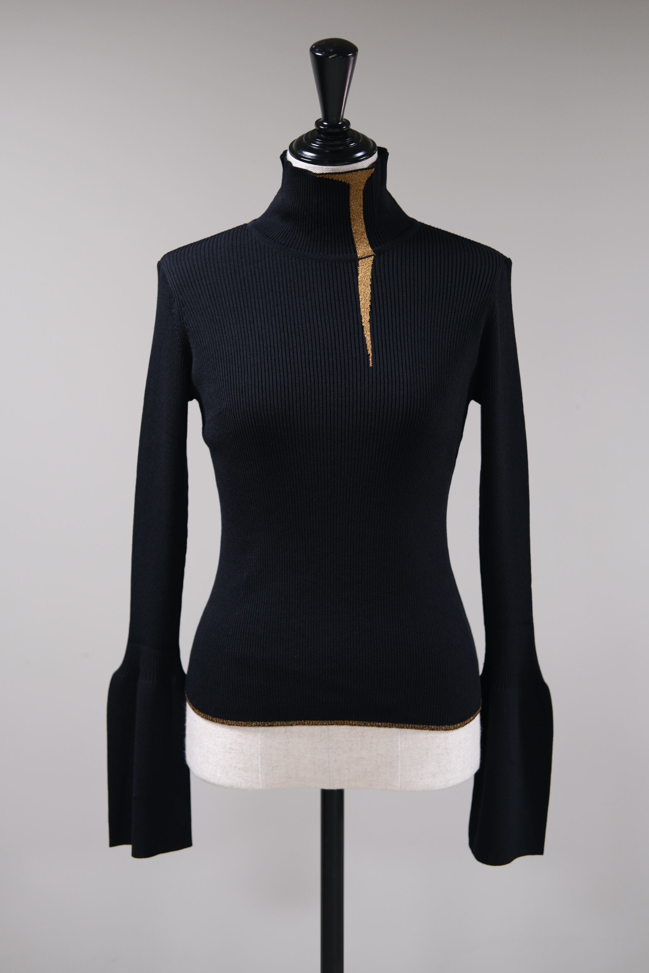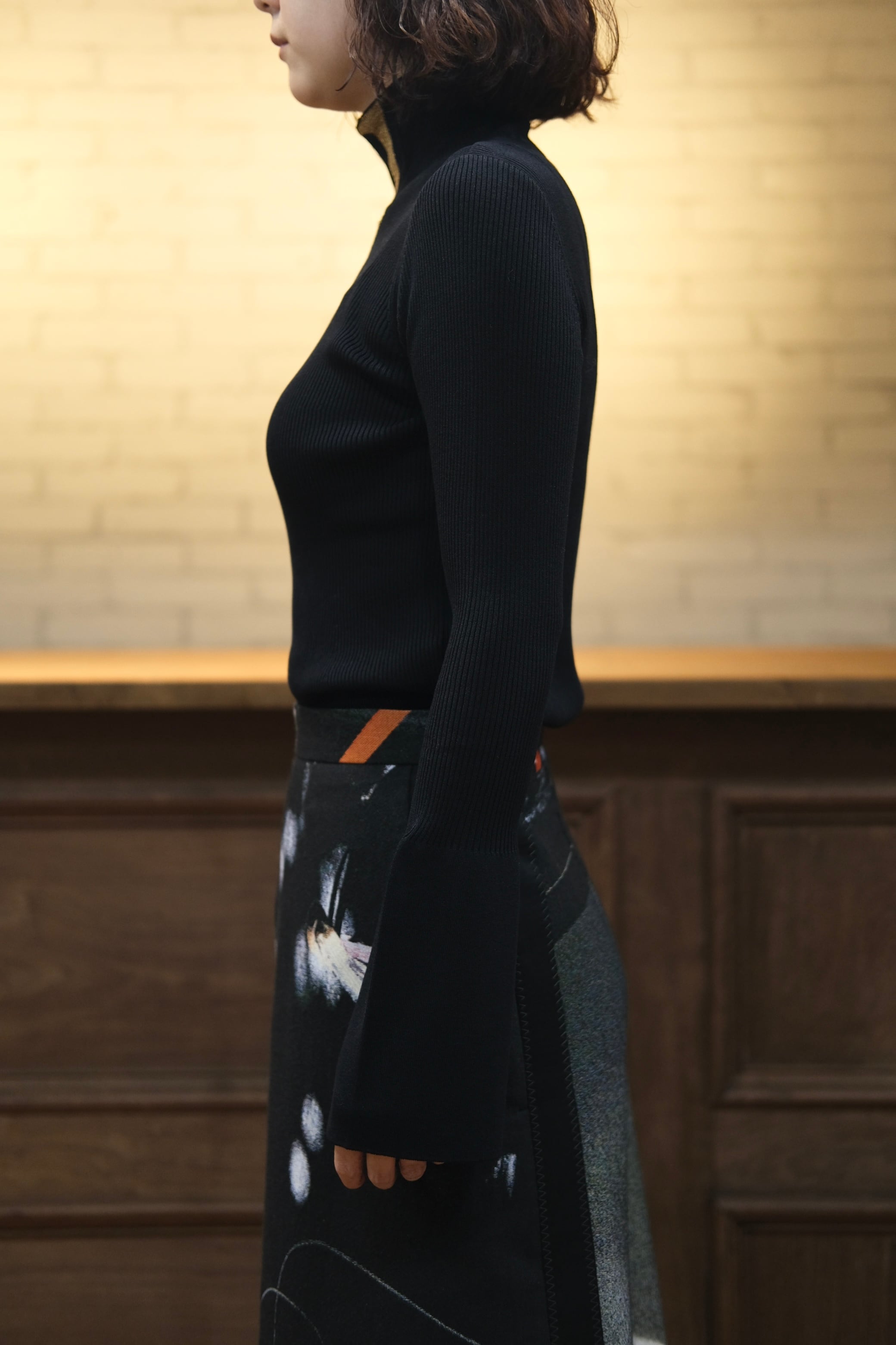 【Mame Kurogouchi】"Kintsugi" High Neck Knitted Top - black -