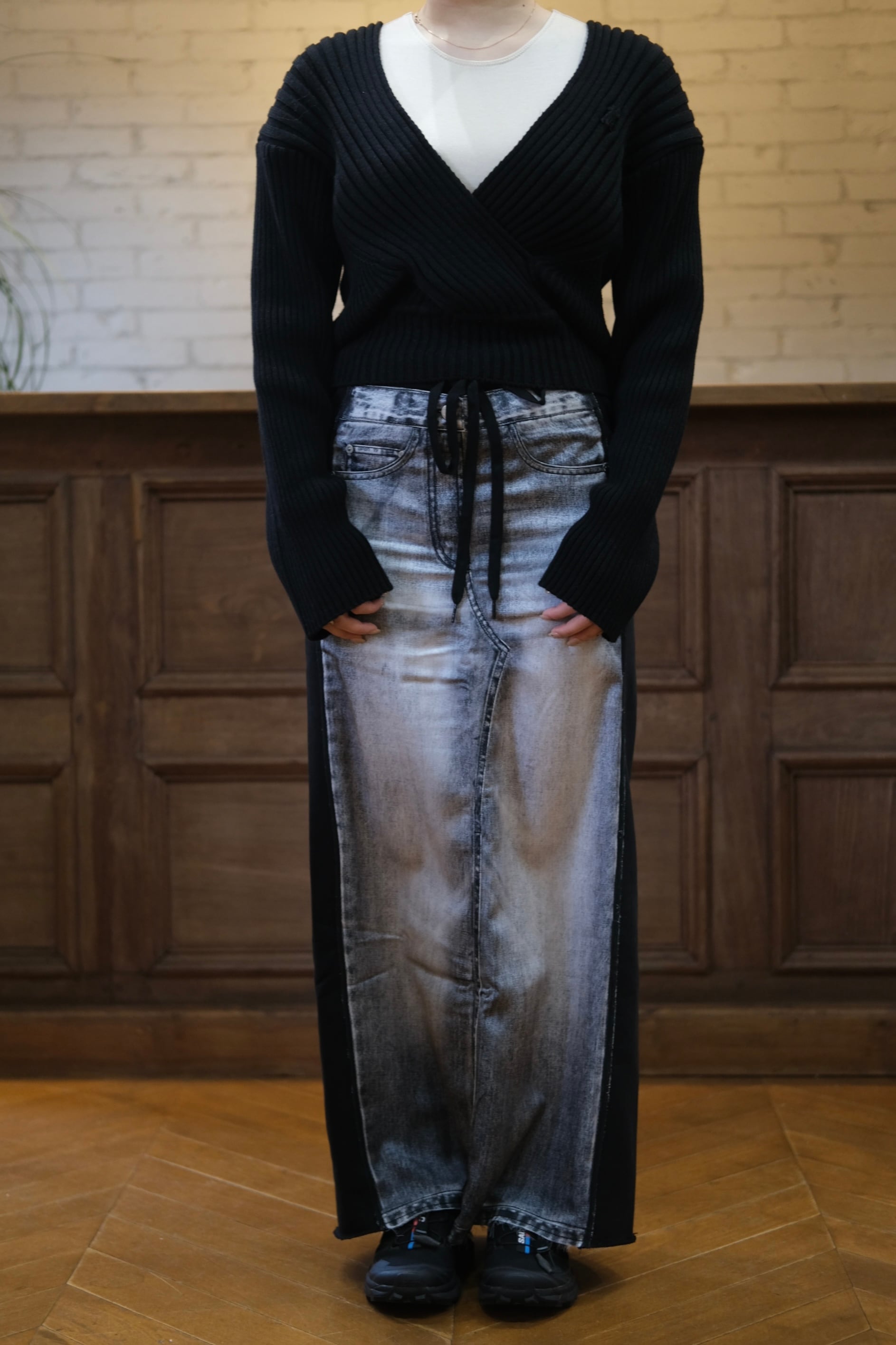【OPEN YY】FRONT JEAN EFFECT JERSEY SKIRT